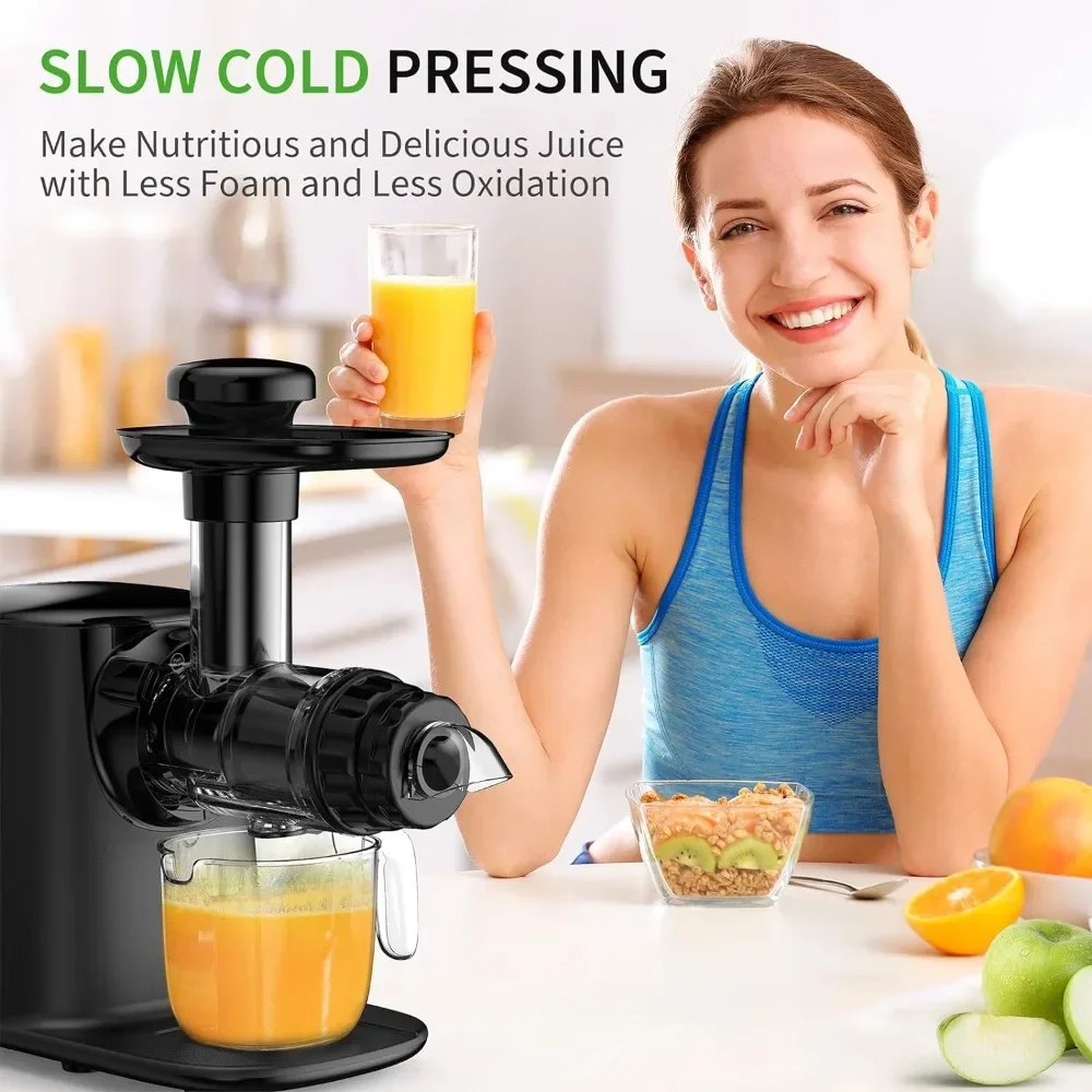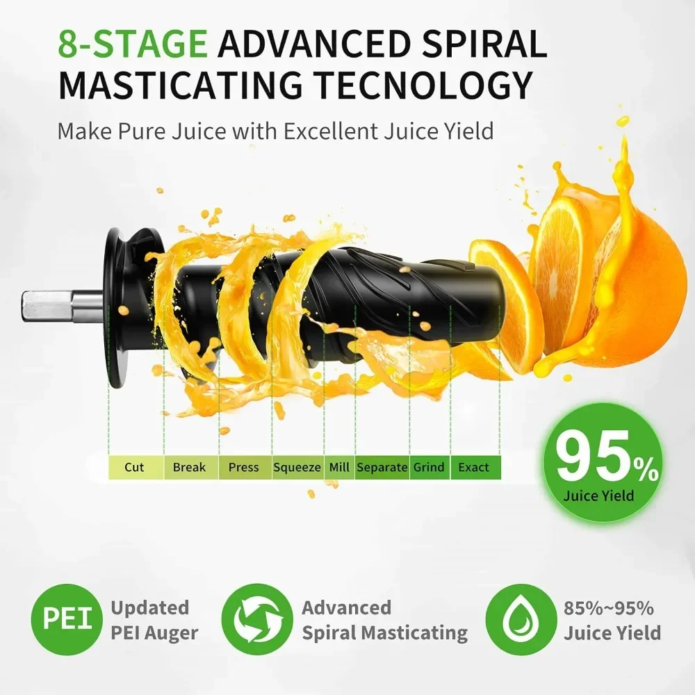 - Higher Nutrient Preservation – With 8 segment spiral masticating technology, juicer machines (80RPM) can preserve maximum nutrients from fruits/veggies and reduce the oxidation rate. You can quickly get a cup of juice with little pulp and foam.
