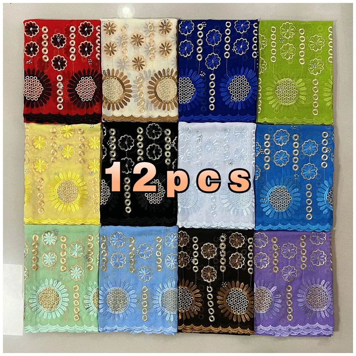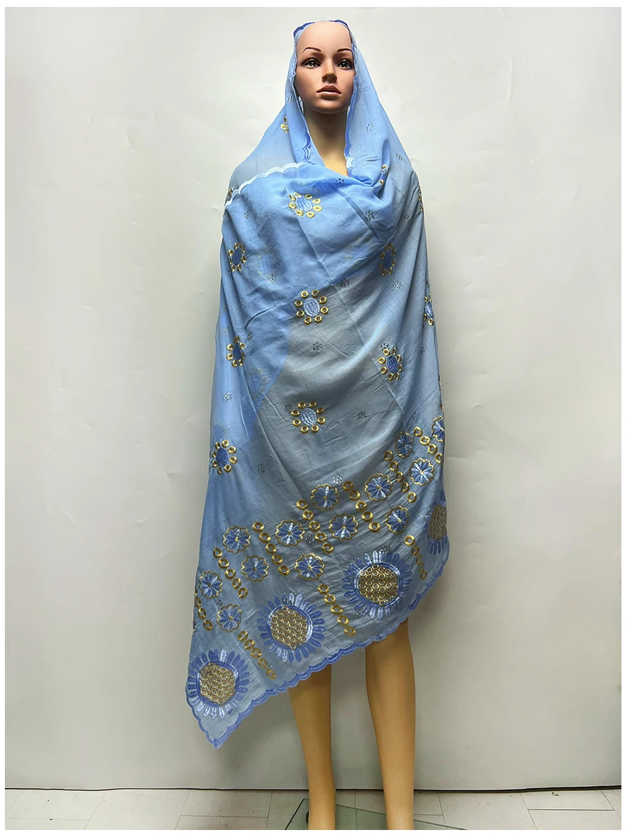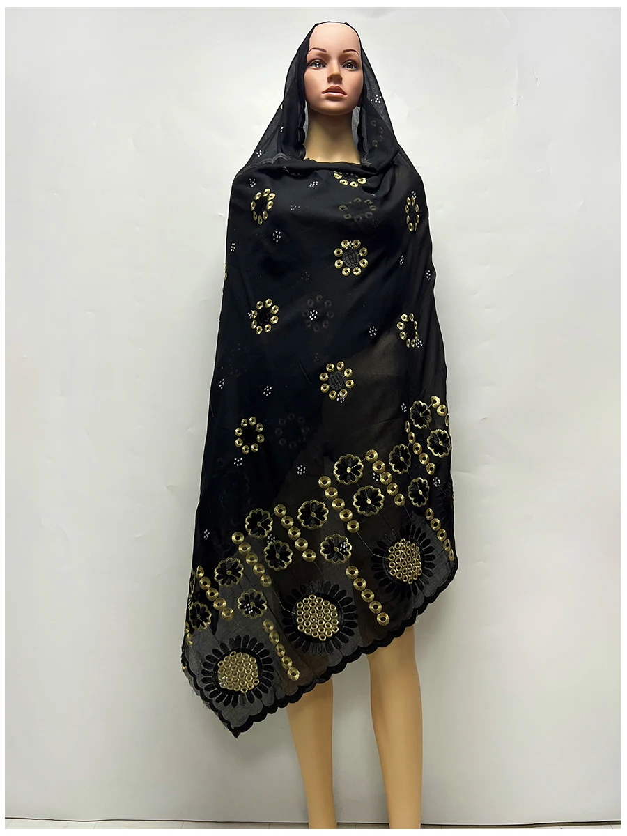 African Women Scarfs Embrodiery Cotton Big Size Muslim Scarf